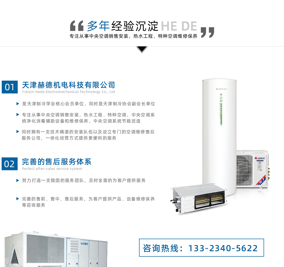 天津赫德機(jī)電科技有限公司是天津制冷學(xué)會(huì)會(huì)員單位,同時(shí)是天津制冷協(xié)會(huì)副會(huì)長(zhǎng)單位,位于天津市海泰經(jīng)濟(jì)區(qū),依托天津制冷學(xué)會(huì)團(tuán)隊(duì)資源從事中央空調(diào)銷(xiāo)售安裝,熱水工程、特種空調(diào)、中央空調(diào)系統(tǒng)凈化消毒輔助設(shè)備和維修保養(yǎng),中央空調(diào)系統(tǒng)節(jié)能改造。赫德機(jī)電致力于綠色建筑暖通,低能耗解決用戶(hù)冷暖,全心全意為用戶(hù)負(fù)責(zé),讓大地更綠天空更藍(lán)。企業(yè)服務(wù)宗旨:做綠色建筑暖通,低能耗解決用戶(hù)冷暖,全心全意為用戶(hù)負(fù)責(zé),讓大地更綠天空更藍(lán)。